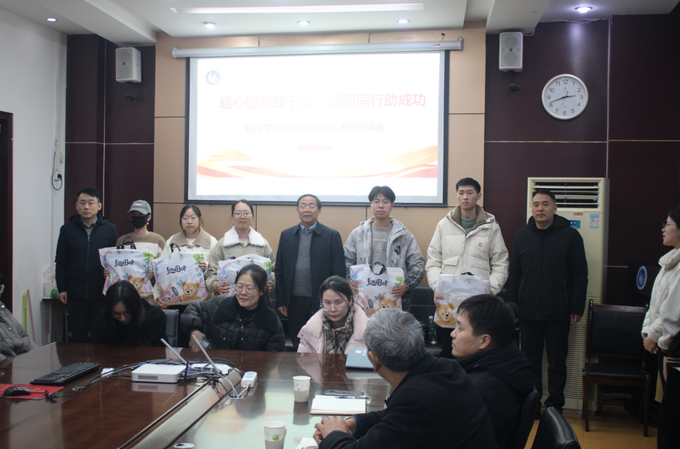下午,在科技楼214会议室召开了以“暖心慰问鼓干劲,研路同行助成功”为主题的考研学生代表座谈会,会议由软件学院党委书记张喜顺主持。