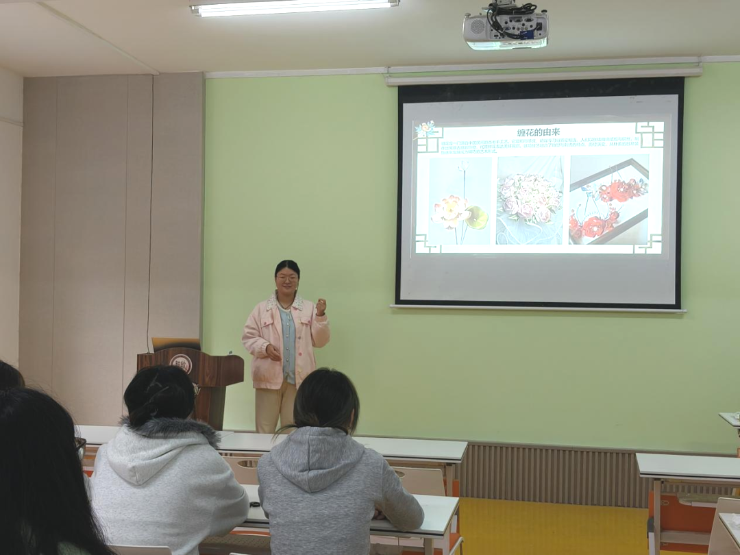 非遗手工课程是本学期美育课堂的一大亮点,缠花与剪纸同步开展,让学子近距离触摸非遗文化的温度。缠花课堂上,朋辈导师全程手把手指导,从铜丝弯折塑形到丝线缠绕晕染,从基础骨架搭建到花鸟轮廓细节勾勒,每一个步骤都耐心示范、细致纠错。同学们全神贯注地跟随操作,当五彩丝线在指尖层层叠叠勾勒出灵动花鸟时,眼中满是专注与惊喜。剪纸课堂同样热闹,朋辈导师从握剪姿势、剪裁力度等基础教起,带领大家从简单对称纹样逐步尝试吉祥图案创作,实时点拨镂空、留白等技巧。课间休息时,同学们纷纷展示缠花半成品与剪纸作品,相互交流创作心得,课堂氛围热闹而温馨。