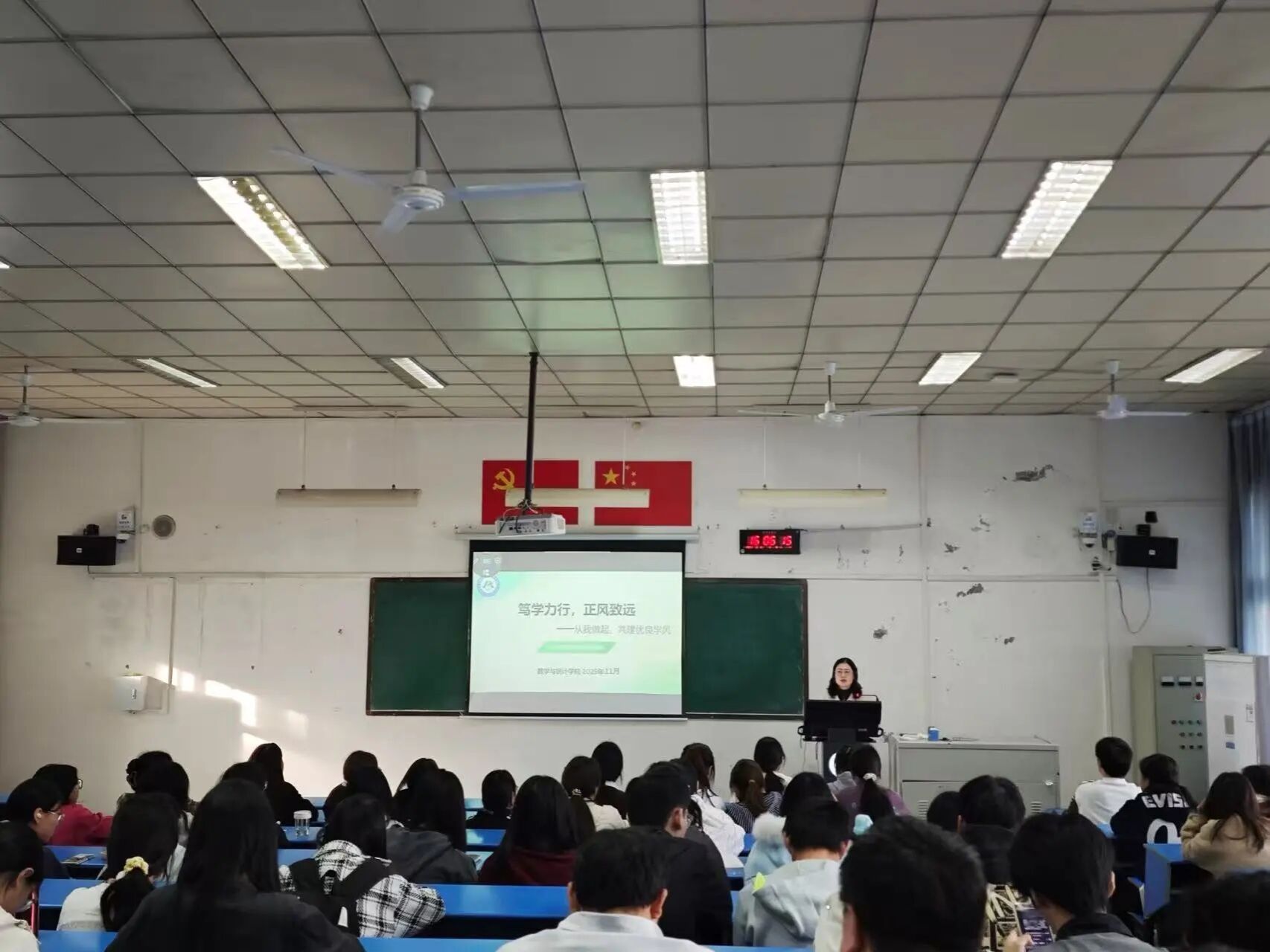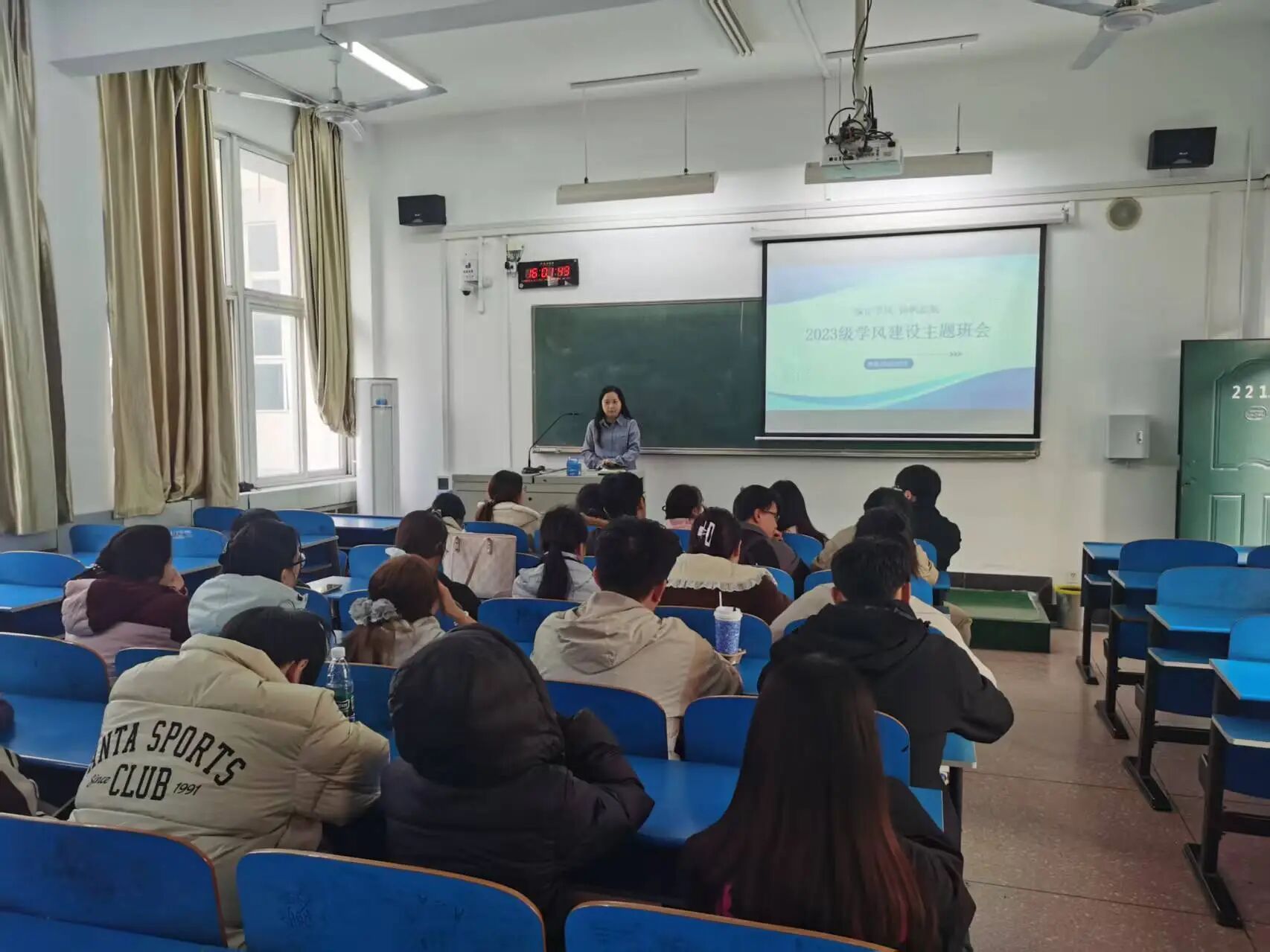 最后,落脚“怎样学”,“怎样学”是求真务实的实践之道,关乎学风建设的落地成效。在各班级主题班会上,辅导员牵头搭建交流平台,同学们分享高效学习方法、探讨自主学习路径。大家普遍认同,良好的学习效果离不开“勤学、善思、笃行”的实干精神——课堂上专注投入、课后深耕细研,以勤补拙;敢于质疑、勇于探索,以思求进,注重实践、知行合一,以行践知。同时,师生共同倡导互助共进的学习氛围,通过组建学习小组、开展朋辈帮扶等方式,让优良学风在班级中蔚然成风,让每一位学生都能在正向引导中稳步成长。
