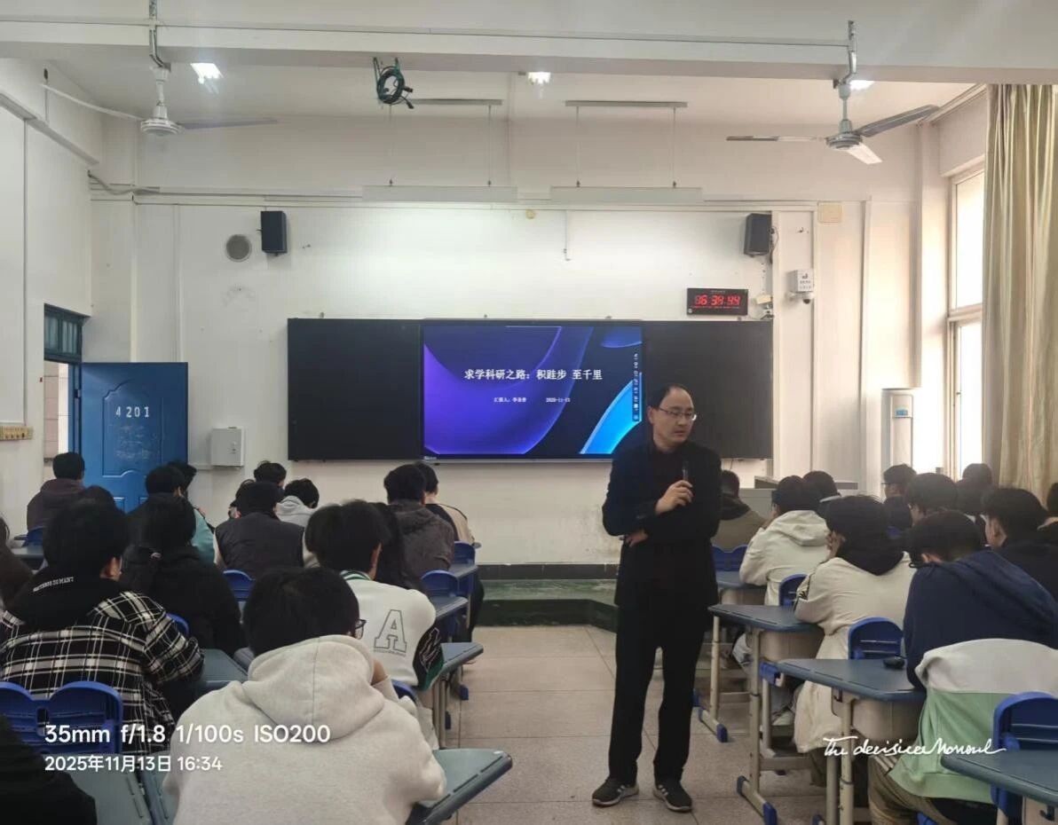 讲座尾声,李圣普博士结合自身经历为同学们提供实用科研建议。他指出,科研兴趣培养可循序渐进:一是借助Google Scholar等工具阅读预印本、核心期刊等高质量文献,建立文献库,跟踪领域动态;二是积极参与学术讲座、研讨会,或担任实验室科研助理,积累实践经验;三是利用开源工具复现算法、开展小型实验,将兴趣转化为实际能力。这些建议为同学们指明科研成长路径,激发大家的科研热情与探索欲望。