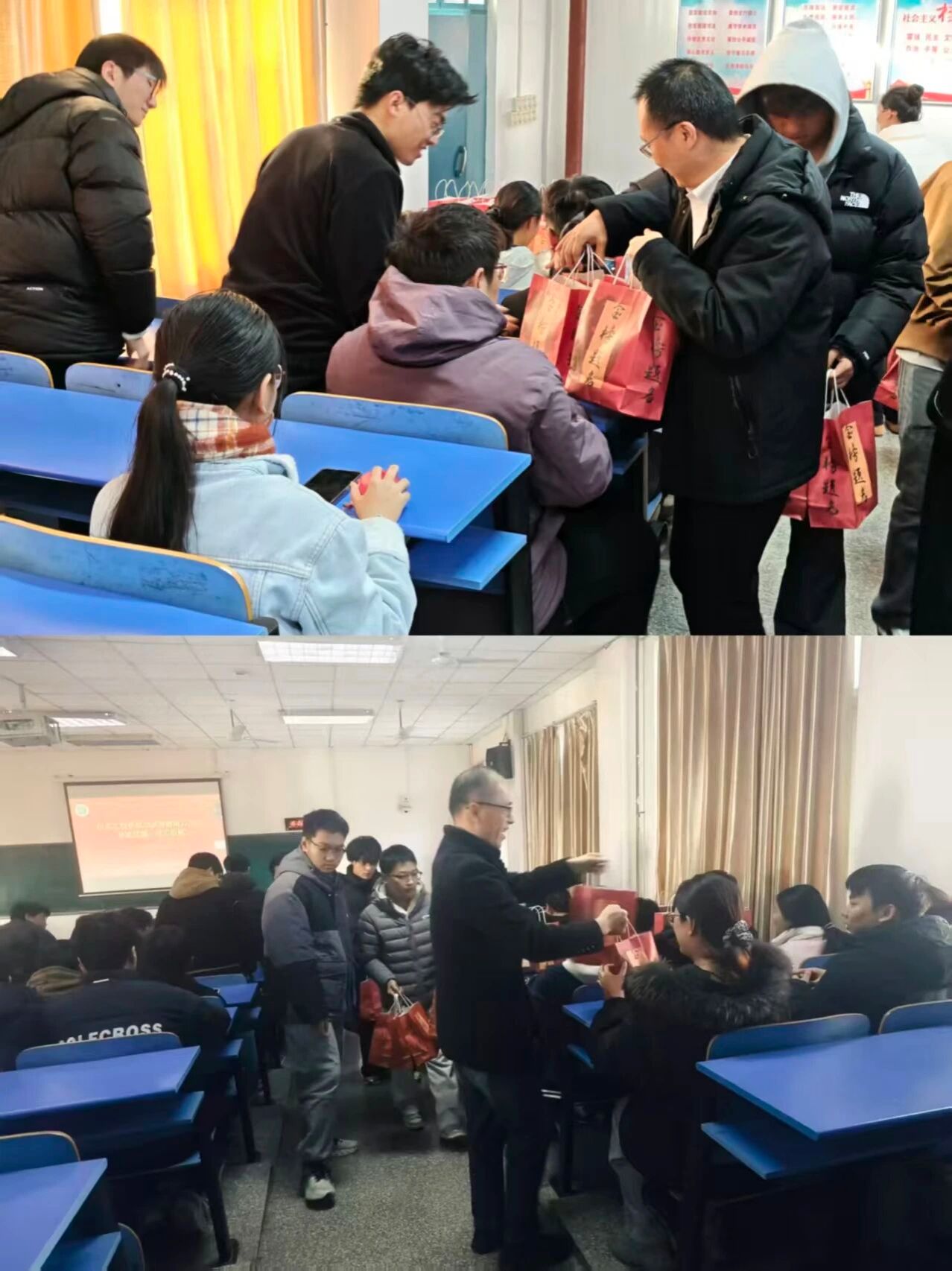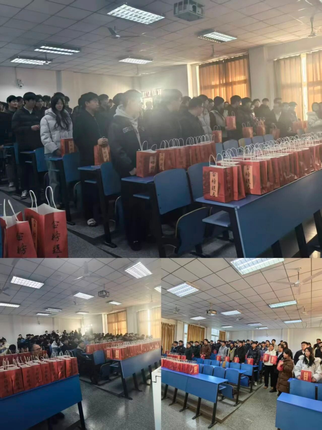 在温馨感人的“送温暖”环节,与会领导和老师共同为考研学子发放了精心准备的“考研加油包”。一份份满载深情的礼物,传递着学院对学子们的殷切期盼和美好祝福,充分体现了学院“以生为本”的工作理念和人文关怀。